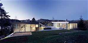 V-house framstår som et friskt, utradisjonelt byggverk satt inn i et flott stykke norsk natur. Det presise formspråket, de store lysflater og leken med terrengfallet viser en ny metodikk innenfor planlegging av enebolig. V-house representerer en ny teknologi knyttet opp i mot bruk av synlige stålkonstruksjoner i boligproduksjon. Synlig malt stål i form av plater i tak og vegger samt konstruksjoner gir bygget et røft, men presist preg.